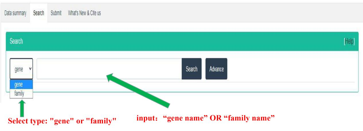 This part is to search and query the members of CAZyme gene family in 151 insect genomes from two types: gene and family. It can be further selected from different orders and species for retrieval and query by click Advance button.